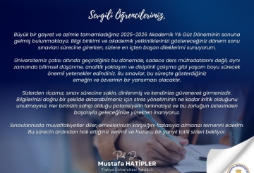 Dear Students, We have reached the end of the 2025-2026 Academic Year Fall Semester, which you have completed with great effort and determination. As you enter the final exam period, where you will demonstrate your accumulated knowledge and academic competencies, I offer you my most sincere wishes for success. During this semester spent under the roof of our university, you have acquired not only the course curricula but also important lifelong skills such as scientific thinking, analytical app..