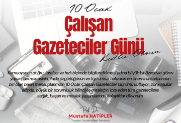 "I congratulate our members of the press, who perform their duties with great self-sacrifice to inform the public accurately, impartially, and swiftly, and who are among the most vital elements of democracy, freedom of expression, and social memory, on January 10, Working Journalists Day. I wish health, success, and ease in their professional lives to all journalists who carry out their profession with a high sense of responsibility under difficult conditions." Prof. Dr. Mustafa HATİPLER R..