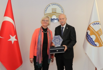 The Ambassador of the Federal Republic of Germany to Ankara, Sibylle Katharina Sorg, visited Trakya UniversityRector Prof. Dr. Mustafa Hatipler in his office. During the visit, which also included Vice Rectors Prof. Dr. Ahmet Muzaffer Demir, Prof. Dr. Mustafa Tan, and Prof. Dr. Eylem Bayır, Rector's Advisor and Deputy Secretary General Assoc. Prof. Dr. Ali İhsan Meşe, and the German Honorary Consul in Edirne Dr. Ercan Dursunoğlu, the importance o..